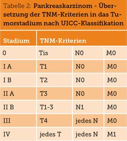 wobei durch diesen Buchstaben nachgestellte Ziffern eine genaue Spezifizierung vorgenommen wird. Die nachfolgende auf das Pankreaskarzinom bezogene Tabelle soll das veranschaulichen.